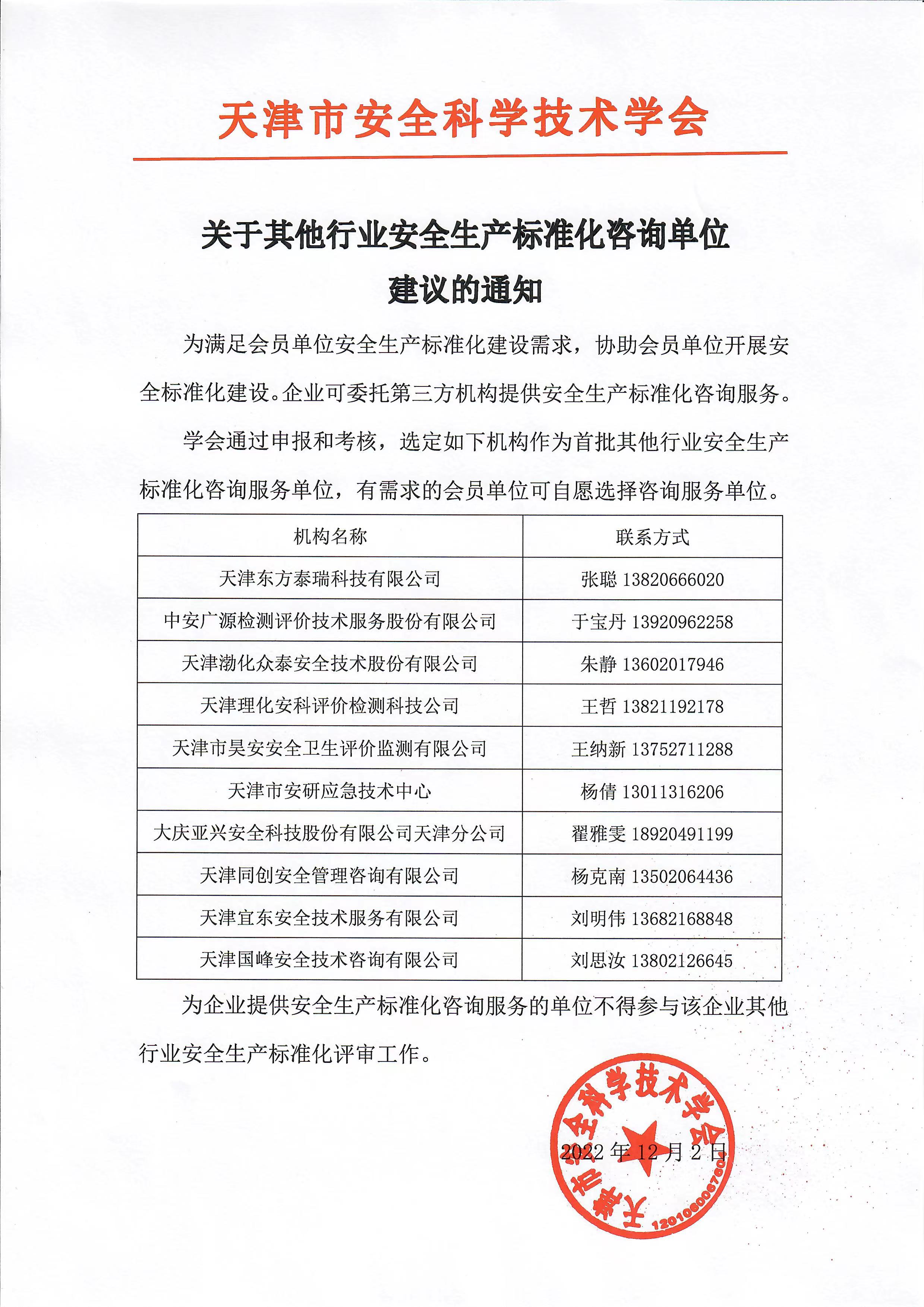 学会通过申报和考核,选定如下机构作为首批其他行业安全生产标准化咨询服务单位,有需求的会员单位可自愿选择咨询服务单位。